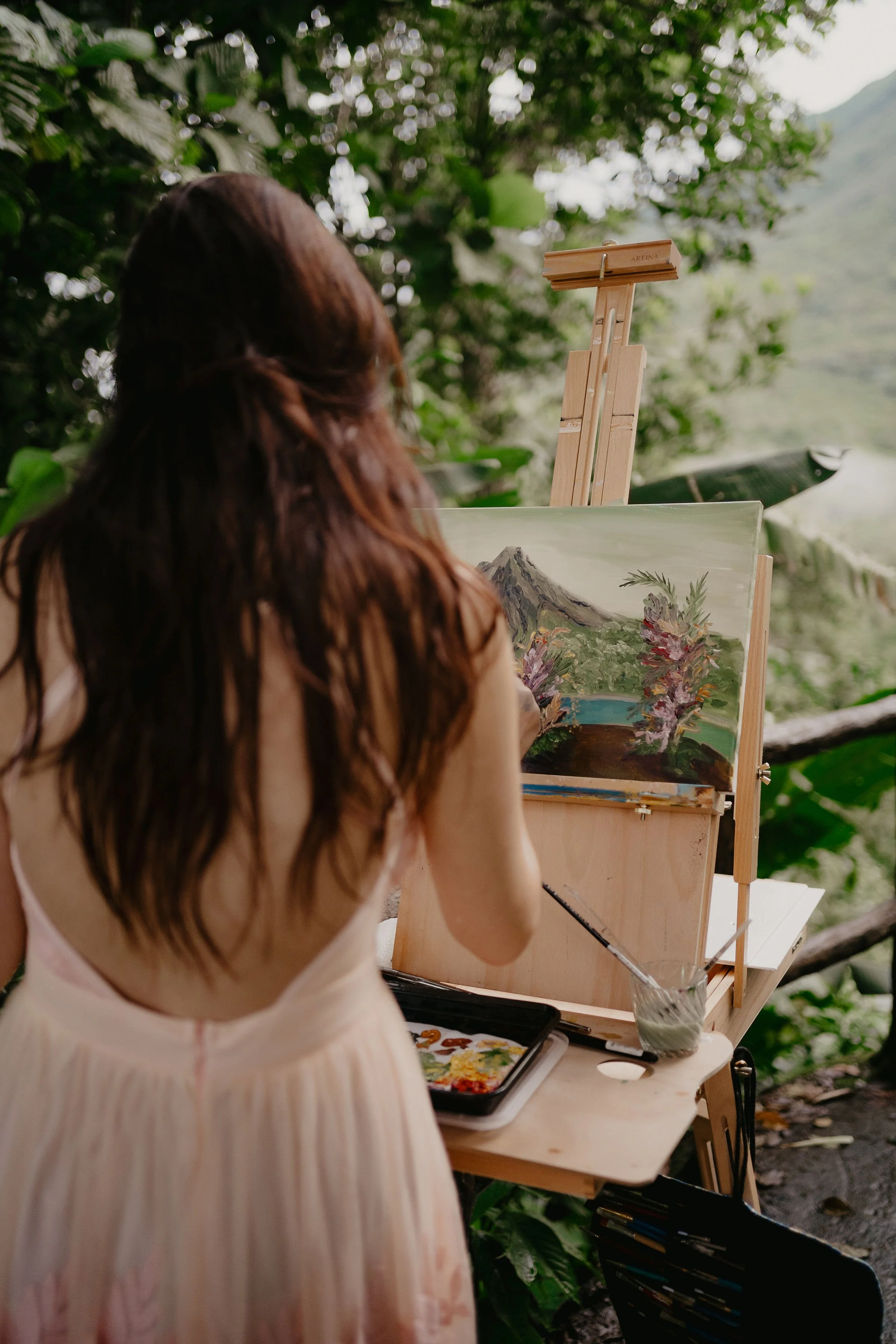 I am a science professor by day, painter by night and weekend! I have painted since elementary school, but really started painting more seriously during the pandemic. I learned about live wedding painting while planning my October 2023 wedding, and I am obsessed (and yes, I did hire a live wedding painter!)! I have lived in the midwest, both coasts, and the UK, and will be finally settling in Williamsburg, VA in January 2025 with my husband and our dog, Banjo! I can’t wait to capture more beautiful memories on canvas in this next chapter.